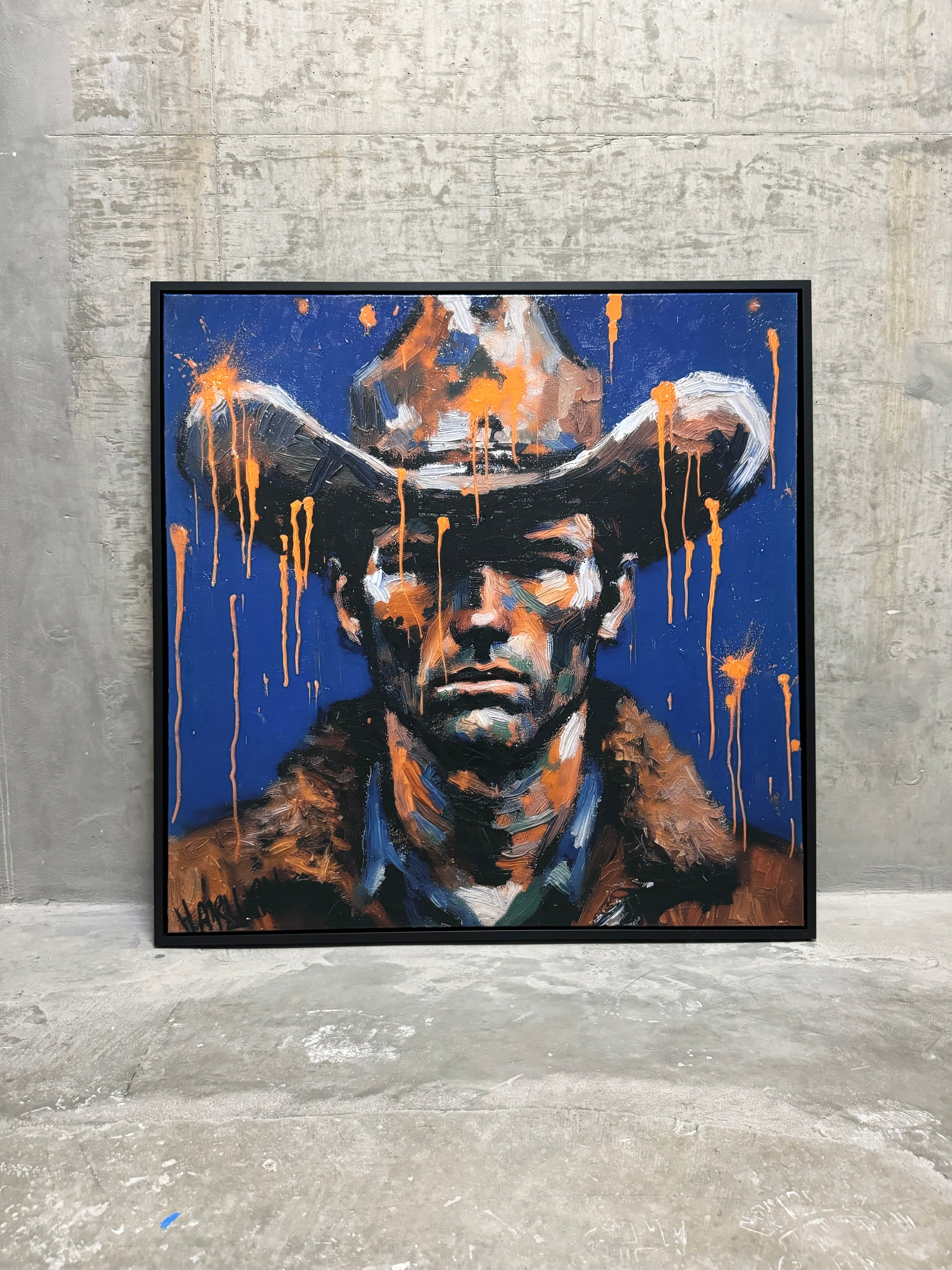 Orange Drip Cowboy | Abstract Realism | Acrylic Painting (38" x 38")